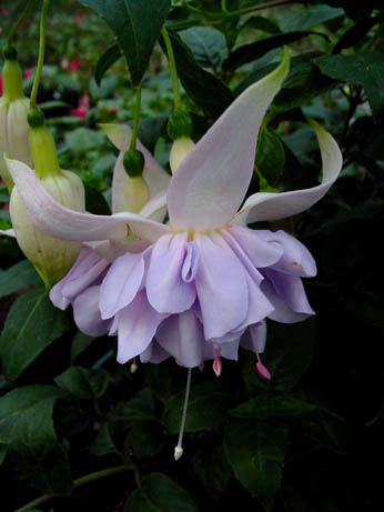 Kleur kelk : wit/rose Kleur kroon : zacht lila/blauw Bloemvorm : dubbel Groeiwijze : hangend Kweker : Garrett Land : Verenigde Staten Jaar : 1989 Opmerkingen : Niet in de volle zon