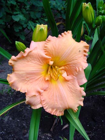 Kleur : zalm/rose Bloemgrootte : 15 cm Hoogte : 55 cm Bloeiperiode : Juli Loof : Bladhoudend Type : Kweker : Salter Land : Verenigde Staten Jaar : 1990 Opmerkingen : -