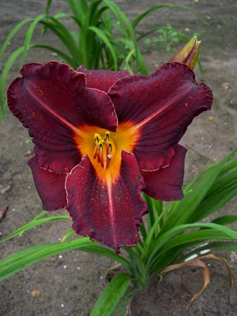 Kleur : donker rood met oranje keel Bloemgrootte : 13 cm Hoogte : 65 cm Bloeiperiode : Juni-Juli Loof : Bladhoudend Type : Kweker : Roberts Land : - Jaar : 1988 Opmerkingen : -