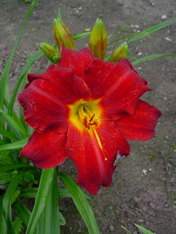 Kleur : donkerrood Bloemgrootte : 15 cm Hoogte : 70 cm Bloeiperiode : Juli Loof : Bladverliezend Type : Kweker : Randall Land : - Jaar : 1959 Opmerkingen : -