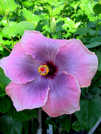 Kleur : lila/purper/rose Bloemvorm : enkel Bloemgrootte : 21 cm Familie : Malvaceae Standplaats : Zon Overwinteringstemperatuur : 15 °C Bloeiperiode : April-november Opmerkingen : -