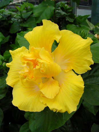 Kleur : geel met wit oog Bloemvorm : dubbel Bloemgrootte : 17 cm Familie : Malvaceae Standplaats : Zon Overwinteringstemperatuur : 15 °C Bloeiperiode : April-november Opmerkingen : -