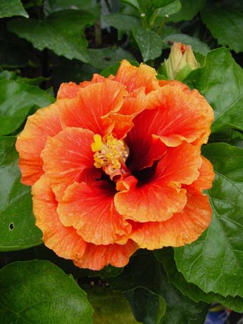 Kleur : geel/oranje Bloemvorm : dubbel Bloemgrootte : 14 cm Familie : Malvaceae Standplaats : Zon Overwinteringstemperatuur : 15 °C Bloeiperiode : April-november Opmerkingen : -
