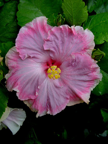 Kleur : lavendel/rose Bloemvorm : enkel Bloemgrootte : 15 cm Familie : Malvaceae Standplaats : Zon Overwinteringstemperatuur : 15 °C Bloeiperiode : April-november Opmerkingen : -