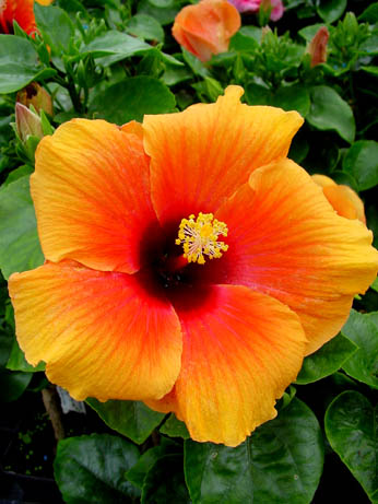 Kleur : oranje/rood Bloemvorm : enkel Bloemgrootte : 15 cm Familie : Malvaceae Standplaats : Zon Overwinteringstemperatuur : 15 °C Bloeiperiode : April-november Opmerkingen : -