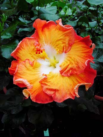Kleur : rood/wit oog Bloemvorm : enkel Bloemgrootte : 15 cm Familie : Malvaceae Standplaats : Zon Overwinteringstemperatuur : 15 °C Bloeiperiode : April-november Opmerkingen : -