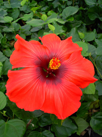 Kleur : rood Bloemvorm : enkel Bloemgrootte : 18 cm Familie : Malvaceae Standplaats : Zon Overwinteringstemperatuur : 15 °C Bloeiperiode : April-november Opmerkingen : -