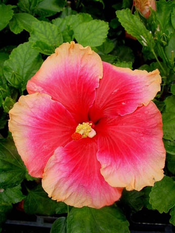 Kleur : rose/rood Bloemvorm : enkel Bloemgrootte : 15 cm Familie : Malvaceae Standplaats : Zon Overwinteringstemperatuur : 15 °C Bloeiperiode : April-november Opmerkingen : -