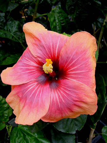 Kleur : grijs met rood oog en creme/oranje rand Bloemvorm : enkel Bloemgrootte : 19 cm Familie : Malvaceae Standplaats : Zon Overwinteringstemperatuur : 15 °C Bloeiperiode : April-november Opmerkingen : -