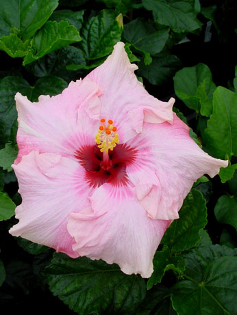 Kleur : wit/rose donkerrood oog Bloemvorm : enkel Bloemgrootte : 24 cm Familie : Malvaceae Standplaats : Zon Overwinteringstemperatuur : 15 °C Bloeiperiode : April-november Opmerkingen : -