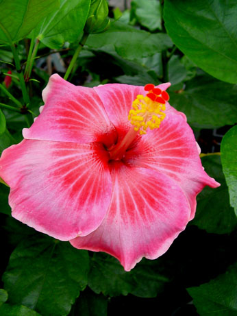 Kleur : rose/rood Bloemvorm : enkel Bloemgrootte : 12 cm Familie : Malvaceae Standplaats : Zon Overwinteringstemperatuur : 15 °C Bloeiperiode : April-november Opmerkingen : -