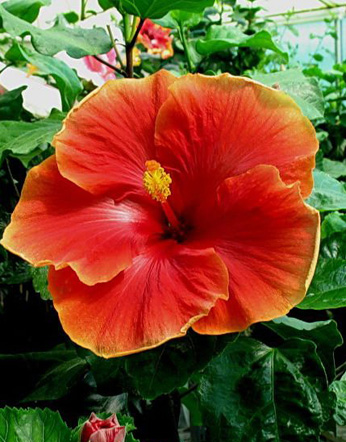 Kleur : oranje/rood Bloemvorm : enkel Bloemgrootte : 21 cm Familie : Malvaceae Standplaats : Zon Overwinteringstemperatuur : 15 °C Bloeiperiode : April-november Opmerkingen : -
