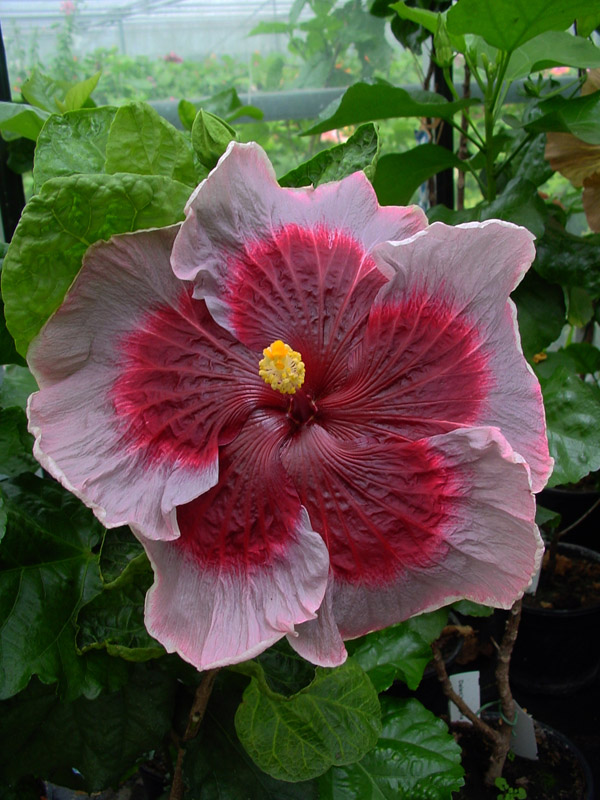 Kleur : grijs/blauw met rood oog Bloemvorm : enkel Bloemgrootte : 22 cm Familie : Malvaceae Standplaats : Zon Overwinteringstemperatuur : 15 °C Bloeiperiode : April-november Opmerkingen : -