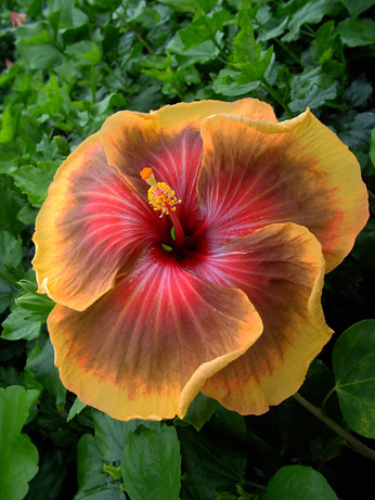Kleur : bruin/oranje donkerrood oog Bloemvorm : enkel Bloemgrootte : 22 cm Familie : Malvaceae Standplaats : Zon Overwinteringstemperatuur : 15 °C Bloeiperiode : April-november Opmerkingen : -