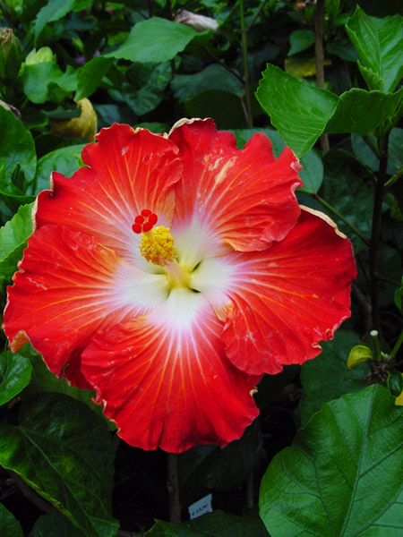 Kleur : rood/wit oog Bloemvorm : enkel Bloemgrootte : 19 cm Familie : Malvaceae Standplaats : Zon Overwinteringstemperatuur : 15 °C Bloeiperiode : April-november Opmerkingen : -